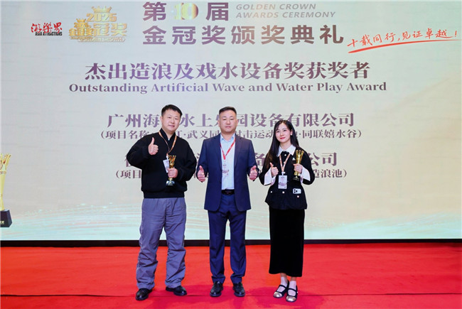 12月11日,2025游乐界文旅发展大会暨第十届金冠奖颁奖典礼于温州乐园旅游度假区隆重举行。旺明国际应邀出席,并凭借卓越的设计与技术实力,以邯郸鲲乐湾水世界中的“翻江倒海水滑梯”与复合造浪池两大标志性产品,一举斩获“杰出水滑道设备奖”与“杰出造浪及戏水设备奖”双项殊荣。这不仅是对旺明国际技术实力的高度认可,更彰显了我们在水上乐园整体解决方案与设备研发领域的领先地位。
